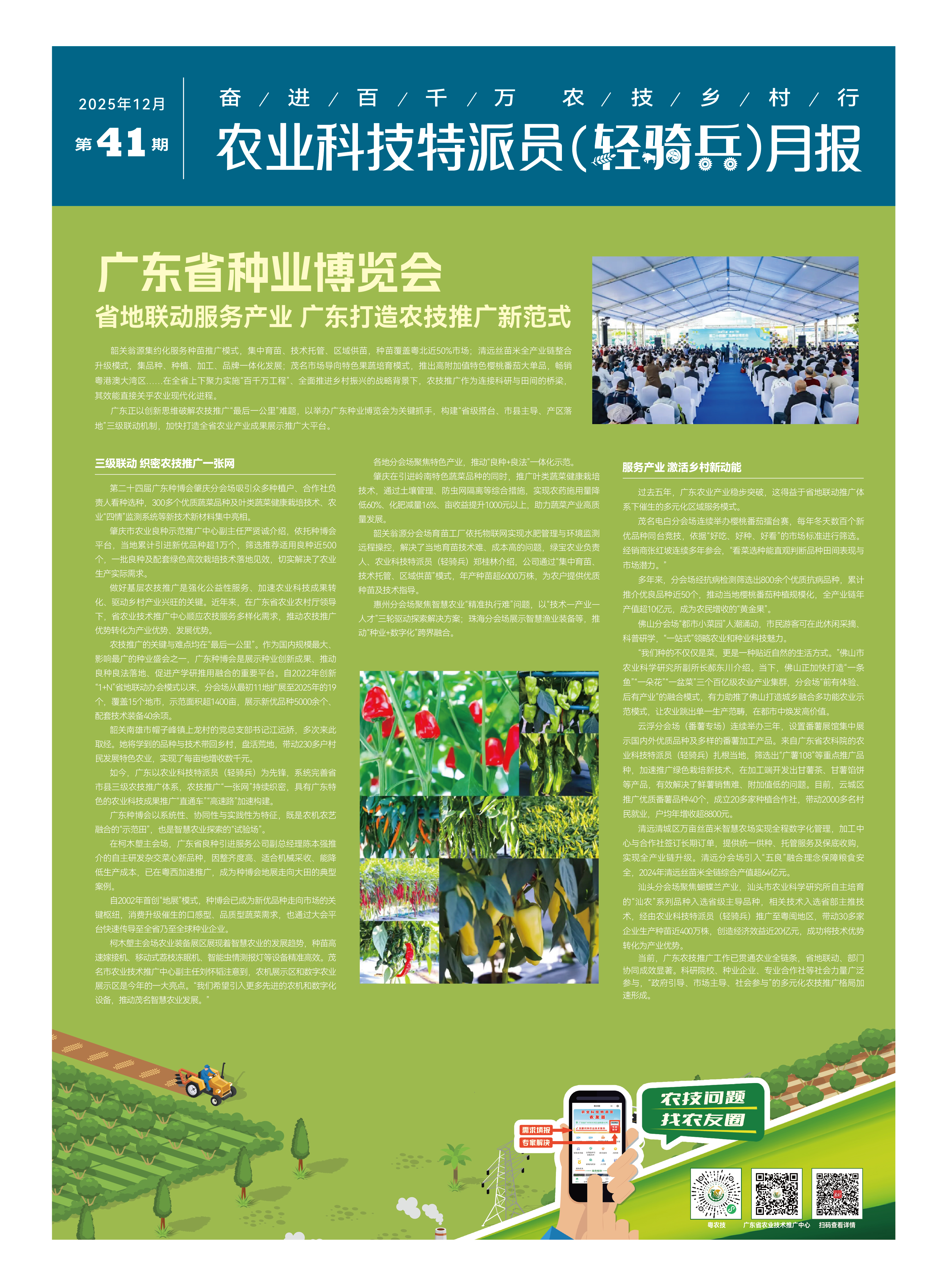 广东正以创新思维破解农技推广“最后一公里”难题,以举办广东种业博览会为关键抓手,构建“省级搭台、市县主导、产区落地”三级联动机制,加快打造全省农业产业成果展示推广大平台。