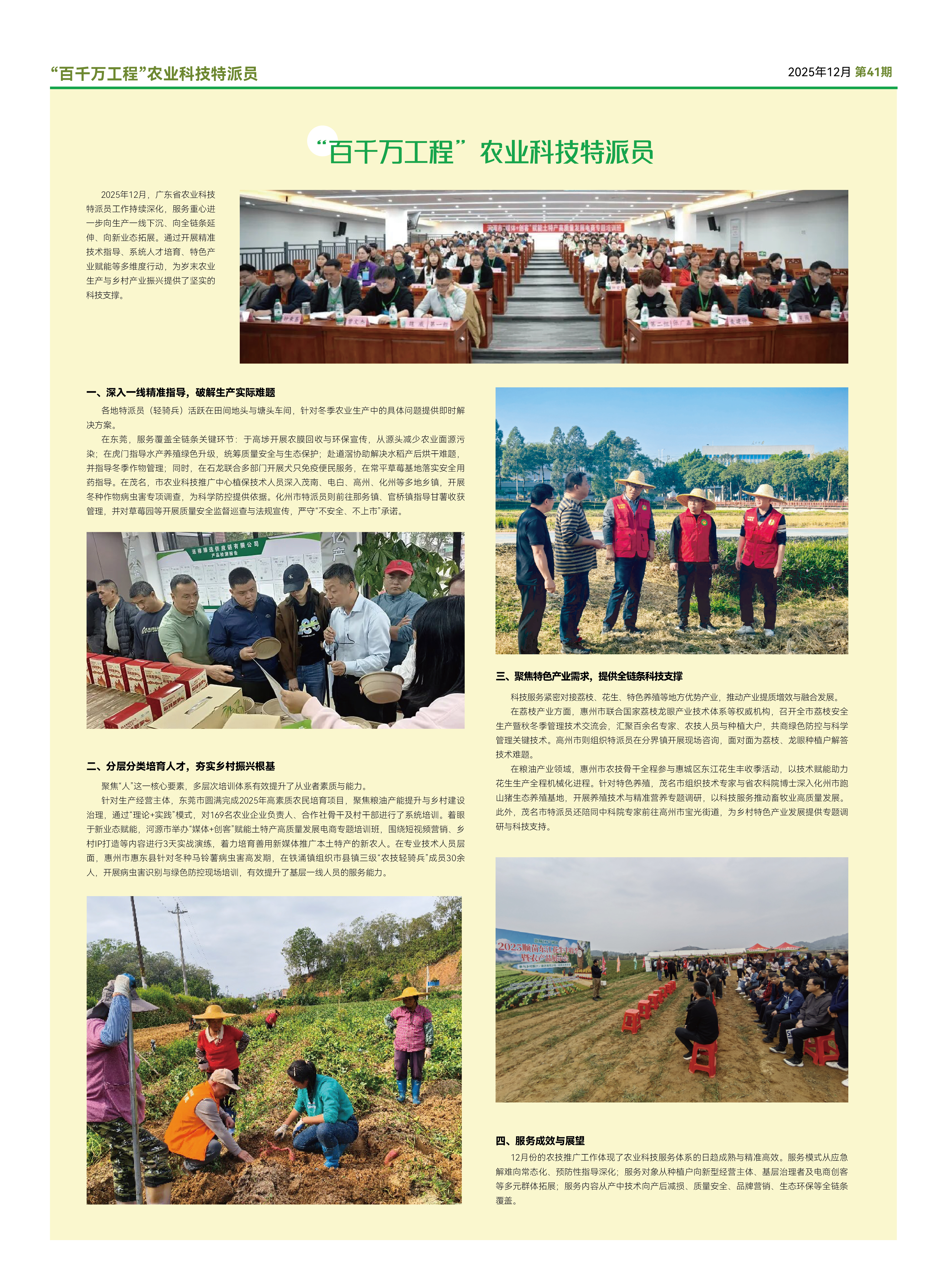 2025年12月,广东省农业科技特派员工作持续深化,服务重心进一步向生产一线下沉、向全链条延伸、向新业态拓展。通过开展精准技术指导、系统人才培育、特色产业赋能等多维度行动,为岁末农业生产与乡村产业振兴提供了坚实的科技支撑。